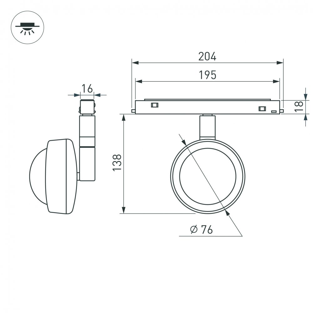 мм. Длина светоизлучающего модуля 49мм. Монтаж на трек MAG-ORIENT. Пульсация <1%. В комплекте набор светофильтров - 5шт (синий, сиреневый,