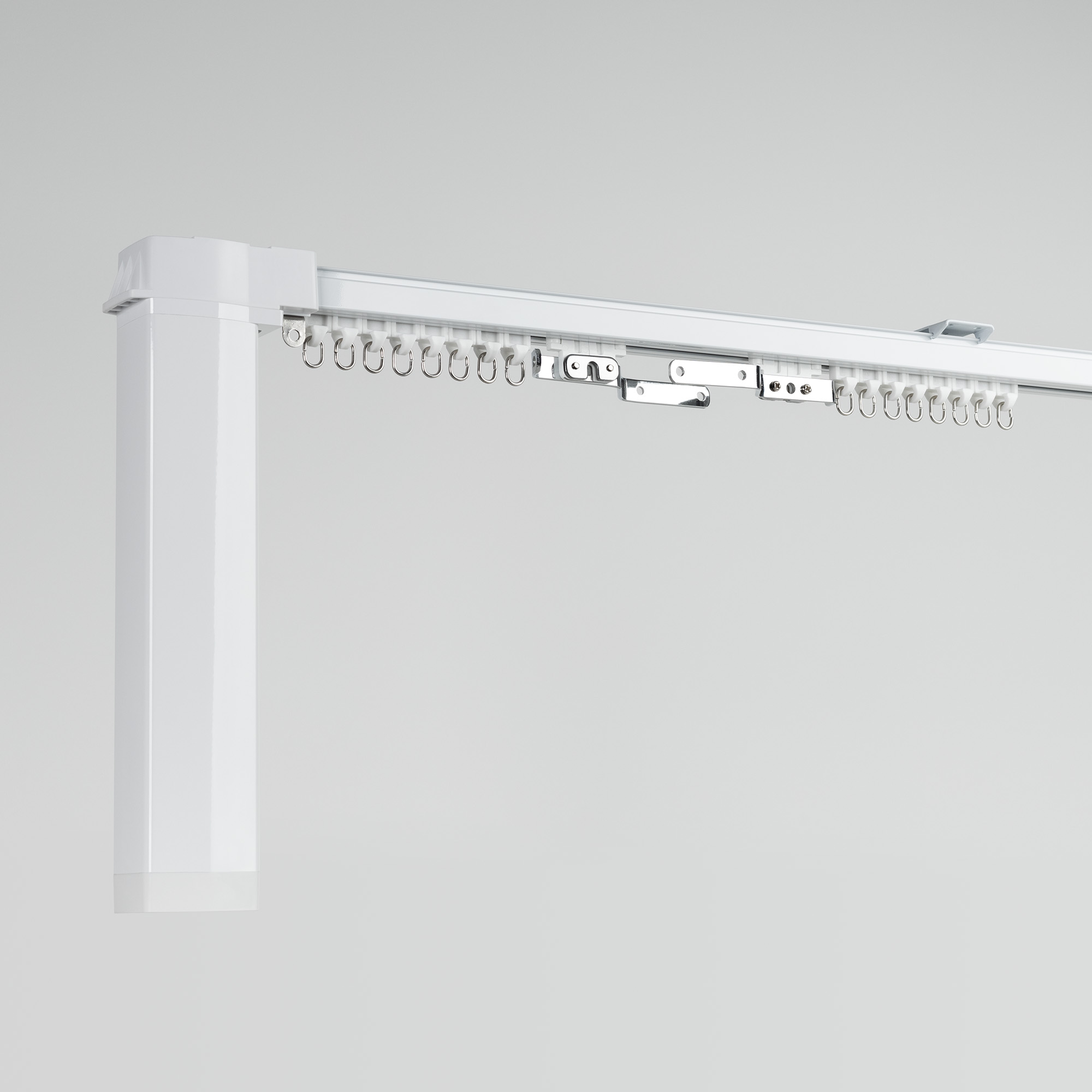 1 мотор, 1 пульт дистанционного управления, алюминиевый профиль 1,6 мм (1 м × 2, 0,5 м × 1, 0,2 м × 2, 0,1 x 1), 2 соединителя 10 см, 1 соединитель 20 см, 1 соединитель 0,05 см, 2 шкива, 2 пряжки ремня, 2 направляющих бегунка, ремень 6,4 м, 24 бегунка, 2 фиксатора, 6 кронштейнов, 1 зажим на ремень