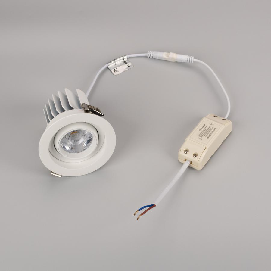 лм/Вт, тёплый 3000 K, CRI>92, угол 20°, напряжение питания 230 В. Белый корпус из алюминия, белая вставка, степень защиты IP20. Размер: диаметр 90мм, высота 80 мм. Монтаж встраиваемый, установочное отверстие: диаметр 75мм. Драйвер 27-40 В, 300 мА, пульсация <2%.
