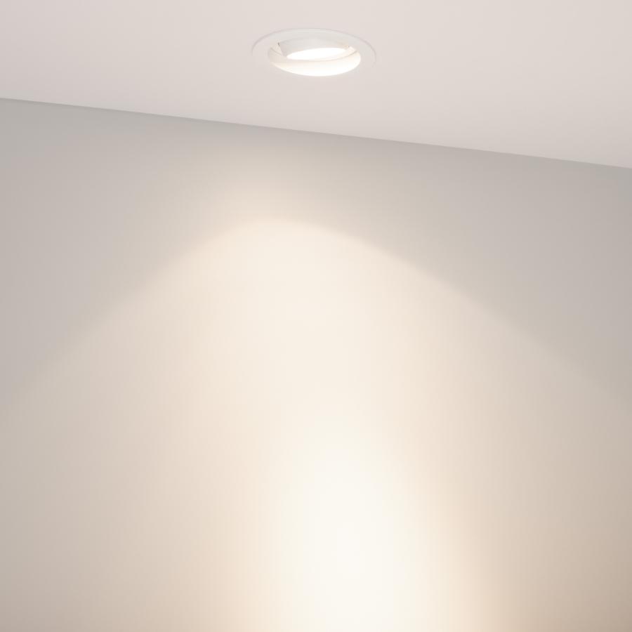 лм/Вт, дневной 4000 K, CRI>92, угол 20°, напряжение питания 230 В. Белый корпус из алюминия, белая вставка, степень защиты IP20. Размер: диаметр 90 мм, высота 80 мм. Монтаж встраиваемый, установочное отверстие: диаметр 75 мм. Драйвер 27-40 В, 300 мА, пульсация <2%.