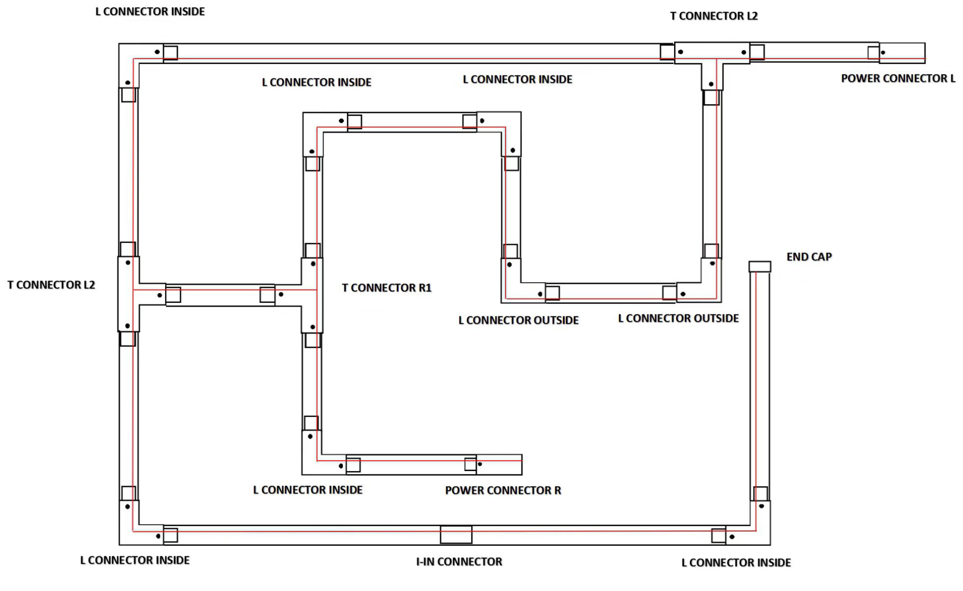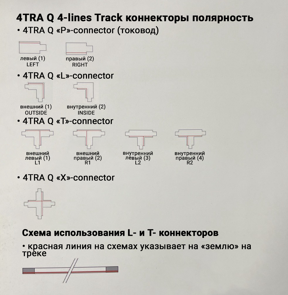 Дополнительно можно приобрести соединительные элементы ( I, L, T, X, M ), что позволит легко соединить треки и добиться необходимой конфигурации цепи для наилучшего освещения помещения.