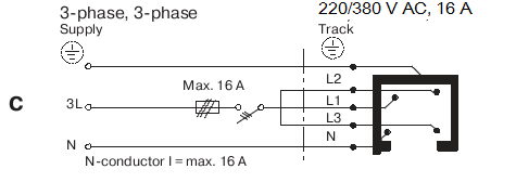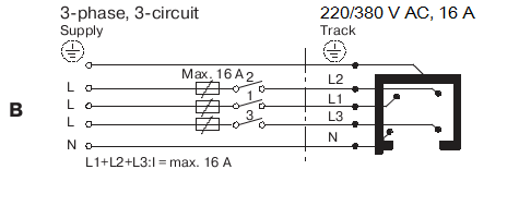 Максимальный ток: 16A на одну фазу. Длина трека 1/ 2/ 3 м. З-х фазная система подключения позволяет подключить к треку максимально возможное количество светильников.