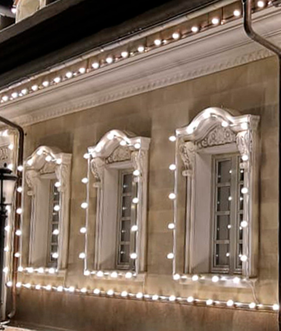 Конструкция цоколя очень удобна для монтажа и позволит быстро, с минимальными затратами, красиво и ровно закрепить гирлянду на стене или потолке украшаемого объекта. Возможно использование гирлянды как внутри помещений, так и на улице (степень защиты IP44-IP65 зависит от вида используемых ламп).