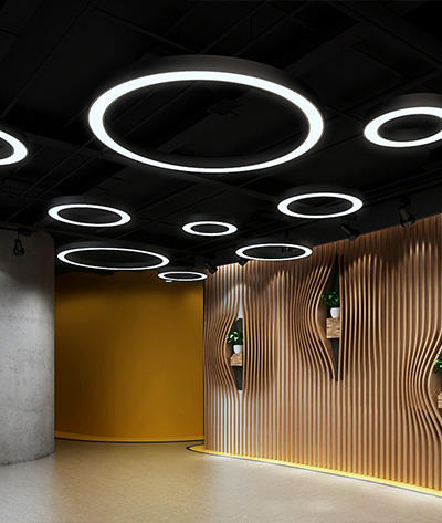 Оригинальная серия многофункциональных фигурных светодиодных светильников круглой формы для профессионального освещения холлов, коридоров, зон ресепшен офисов, общественных помещений, супермаркетов, магазинов, торговых комплексов, выставочных залов, где требуется высококачественное основное освещение или идеальное оформление интерьера.