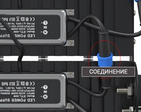 В комплект светильника входят: светодиодный модуль 50Вт в алюминиевом корпусе, LED driver (блок питания), соединительные кабели с разъемами IN-OUT, соединительные боковые пластины.