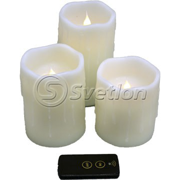 Светодиодный светильник, выполненный в виде трех свечей длиной 10, 12 и 15см. Управляется пультом дистанционного управления на расстоянии до 6м. В качестве источника питания используются три батарейки ААА 1.5V. Светодиодные свечи изготовлены из полиуретана матового цвета с имитацией в верхней части подтеков воска. В рабочем состоянии светильник создает реальную иллюзию мерцающего пламени горящих свечей. Свечи можно установить все вместе в подсвечник или каждую отдельно в нужной точке. Светильник в виде трех свечей с электрическими светодиодными лампами – оригинальное решение для создания романтической обстановке в жилых помещениях, кафе, ресторанах. Это интересный подарок для друзей и близких людей.