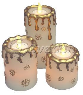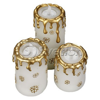 Светильники светодиодные в виде свечи (в комплект входят 3 шт. высотой 15, 12 и 10 см, диаметром 7,5см) с возможностью "задува пламени". Источник питания - батарейки ААА 1.5V 3 шт/ на 1 свечу (в комплект не входят). Свечи светодиодные изготовлены из матового полиуретана с имитацией потеков воска и декоративной раскраской. В нижней части светильника расположены светодиоды, которые включаются с помощью выключателя и горят постоянно. Верхняя свеча включается и выключается с помощью потока воздуха ("задува"). В процессе работы светильники имитируют естественное горение свечи в виде колебания пламени. Свечи могут быть установлены отдельно или в специальных подсвечниках. Интересный дизайн светильников, оригинальное световое решение и интеллектуальный способ выключения - отличный выбор и великолепный подарок для друзей и знакомых.