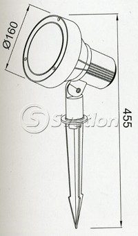 В качестве источника света в светильнике может применяться любая лампа с цоколем Е27, в том числе галогенные и энергосберегающие лампы. Изготовлен светильник из специального алюминиевого сплава, покрытого защитным антикоррозионным слоем. Светоотражательный оптический элемент выполнен из анодированного алюминия и надежно защищен от попадания внутрь влаги и воды термостойким прозрачным стеклом с силиконовой прокладкой. Светильник можно установить на участке под любым углом и повернуть в нужном направлении, благодаря специальной стойке-ноге с заострением внизу. Сборка светильника выполнена с использованием крепежа из нержавеющей стали. Оригинальный, продуманный дизайн органично сочетается с любым ландшафтным стилем.