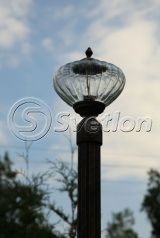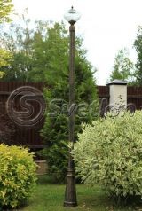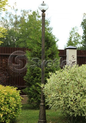 Этот уличный светильник выделяется из толпы других своим высоким ростом. Выделяется, помимо прочего, и на фоне небольших садовых деревьев. Лучше всего выглядит, когда необходима верхняя подсветка крон деревьев в парке или сквере. Его достаточно тонкое основание зеленовато-желтого цвета позволяет замаскироваться в дневное время на фоне стволов и листьев, а прозрачный стеклянный плафон сольется с небом. В вечернее время свет от такого светильника будет выглядеть блуждающим огоньком над верхушками деревьев. Разнообразных мистических эффектов можно добиться при помощи разных ламп – накаливания или энергосберегающей.
