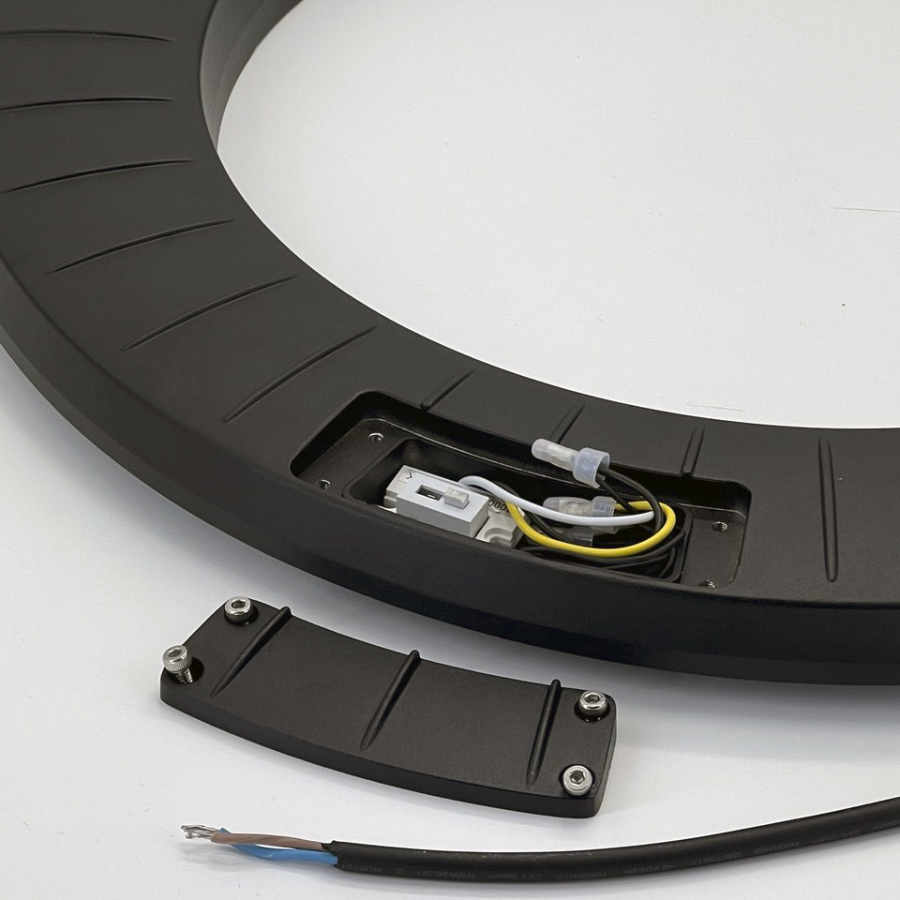 - Сверху светильника находятся 2 лючка. В одном подключен сетевой кабель, в другом находится переключатель режимов свечения. Заводская установка - режим 3000K. Каждый потребитель может выбрать предпочтительный из 3-х вариантов (3000-4000-5000К) и установить его при монтаже светильника или изменить в процессе эксплуатации.