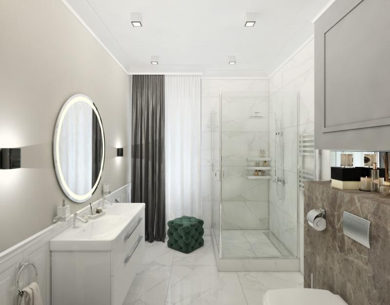 Неправильно организованное освещение «крадет» пространство и делает ванную менее функциональной: в полумраке не хочется экспериментировать с макияжем, пробовать новый уход — да и просто смотреть на себя в зеркало.Чтобы добавить ванной комнате уюта и простора, сделайте освещение разнонаправленным и вариативным: замените скучную люстру на несколько источников света.В качестве основного используйте встроенные или накладные споты — лампы, которые можно поворачивать под разными углами. А в качестве дополнительных рассмотрите бра, светодиодную подсветку или подвесные светильники.Обязательно осветите зону зеркала. В зависимости от дизайна, можно выбрать встроенное освещение зеркала или автономные бра, расположенные симметрично с двух сторон от раковины.Наконец, увеличить пространство ванной комнаты можно за счет окна. Это редкое решение в современных проектах, но обязательно присмотритесь к такому варианту, если только рассматриваете варианты покупки квартиры.