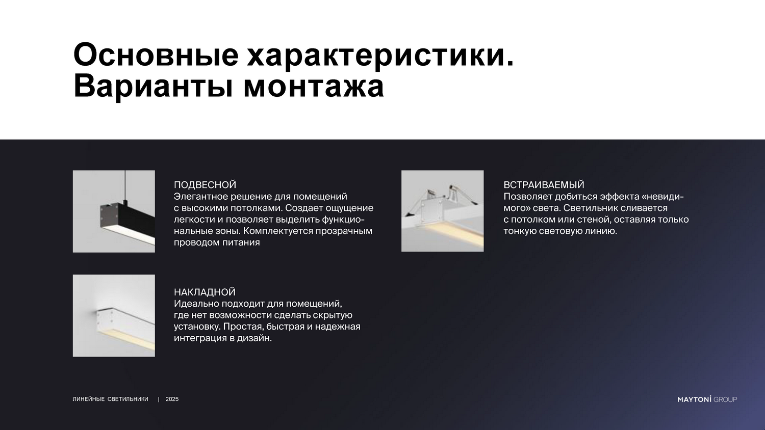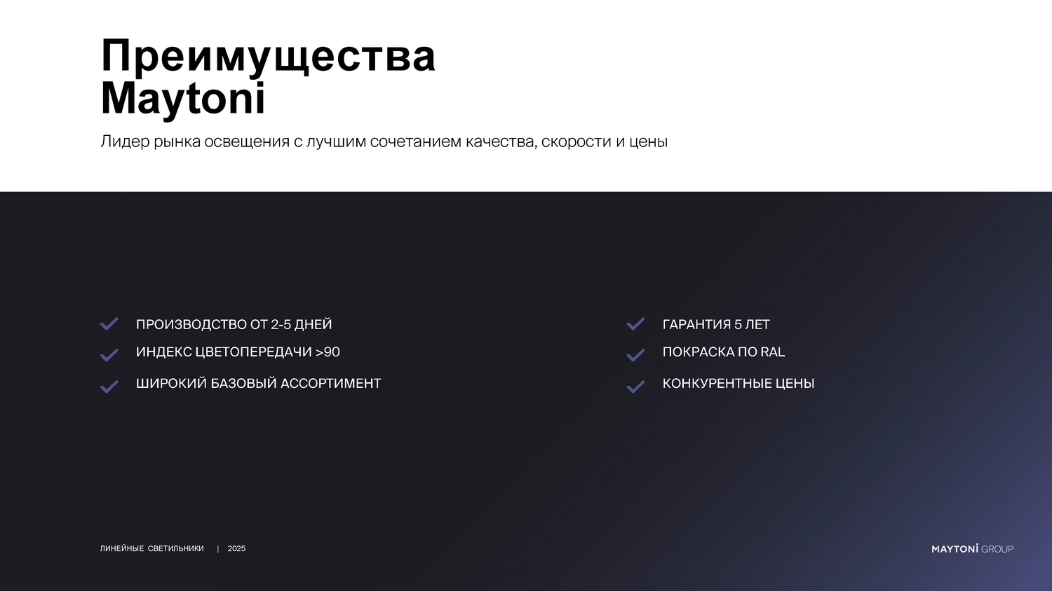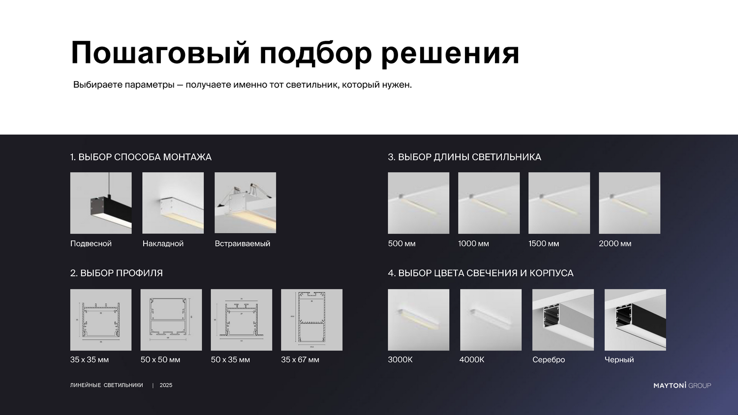- Главное преимущество работы с нами — полная свобода проектирования. Мы предлагаем изготовление светильников под разную длину, что особенно важно для нестандартных планировок и дизайнерских решений, где не подходят готовые заводские размеры.