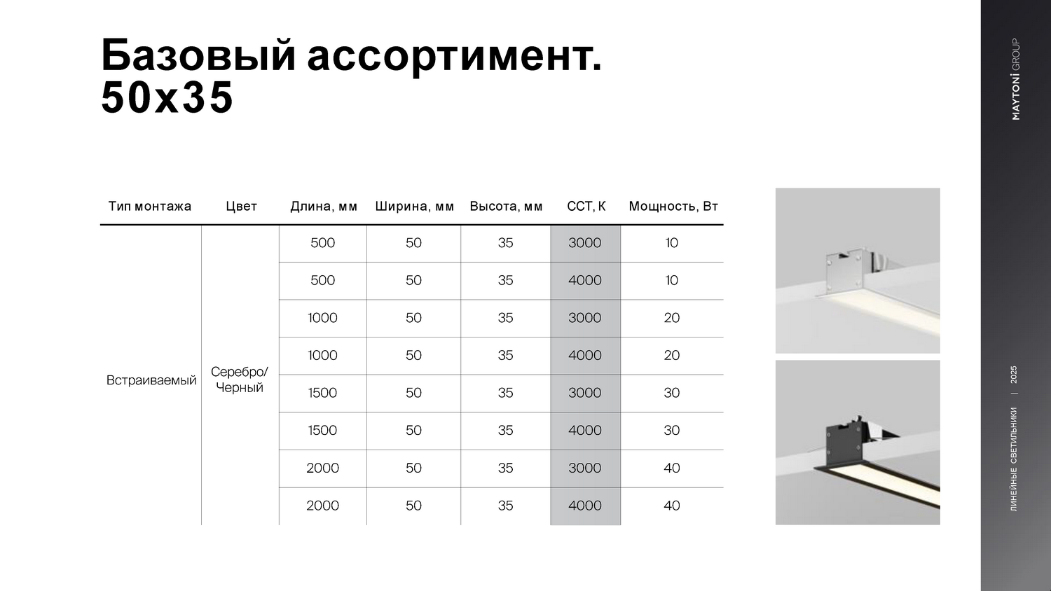 - Широкая палитра корпуса — белый, чёрный, анодированный серебро, золото, бронза, RAL по вашему образцу